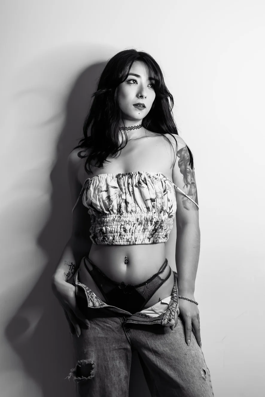 I am a mixture of soft mystery and intense desire. I love playing with the imagination... that part where a slow look, a delicate gesture or an almost forbidden smile say much more than words.